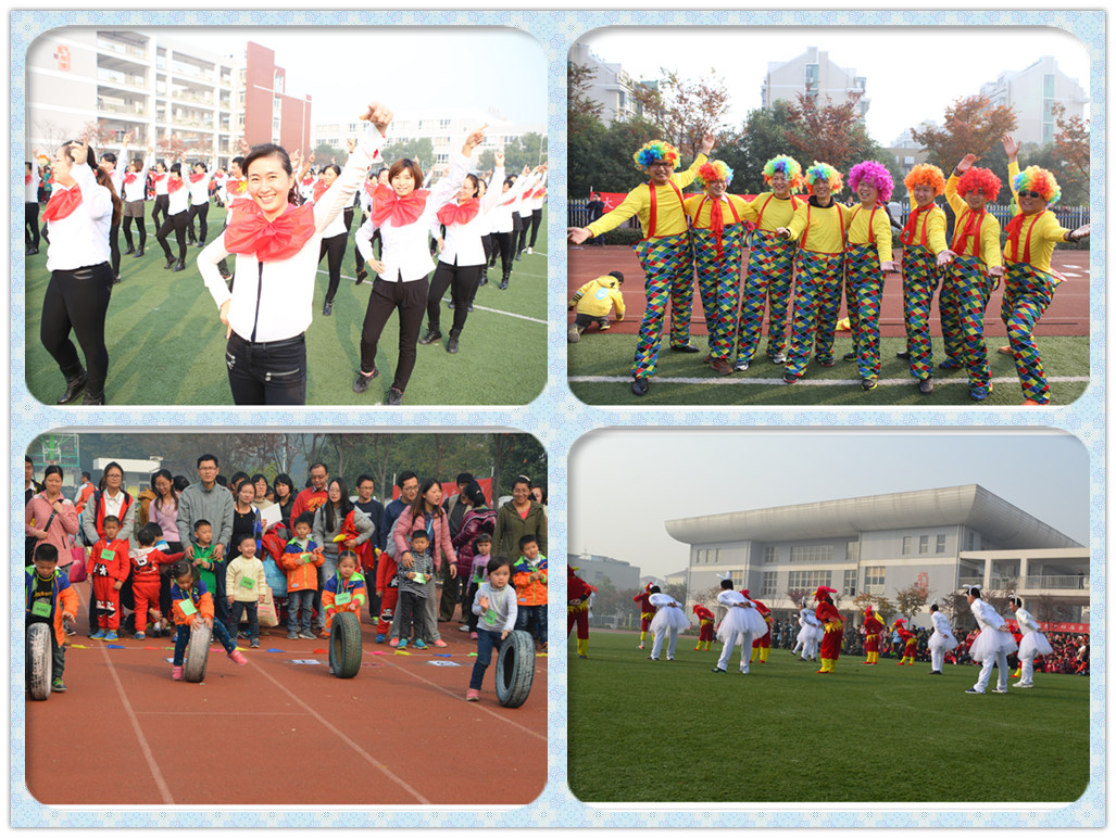 整个运动会共分为开幕式——运动竞赛——颁奖三个层序。在米老鼠、跳跳虎等卡通玩偶的热情互动下,精彩的开幕式表演正式拉开了帷幕:伴随着欢快的节奏,活力四射的幼儿团体操、热情奔放的的家长“苹果舞”纷纷亮相,让现场观众一饱眼福,精彩的开幕着实调动了大家的运动欲望。紧接着,各班家长代表又倾情演绎了独具特色的“一分钟啦啦秀”,幽默诙谐的表演、造型各异的设计,令孩子们欢笑不已,其中可爱的“鸡宝贝”、酷酷的“解放军”等生动的形象频频受到小朋友的追捧。随后,各班大小运动员们排着整齐的方阵队伍,高喊着班级口号,雄赳赳、气昂昂地步入了运动场,主持人充满激情的解说,代表们热情洋溢的讲话,啦啦队热情的欢呼助威,使现场变成了欢乐的海洋。