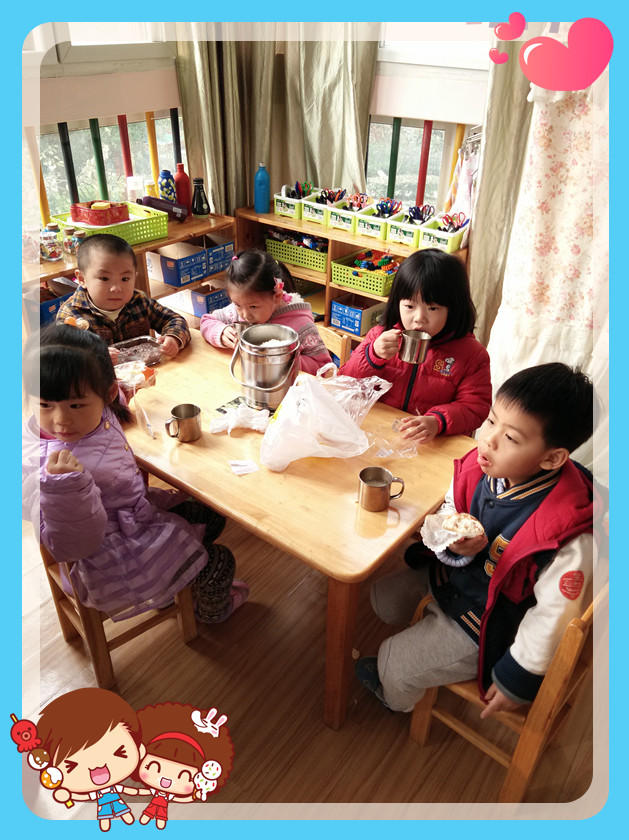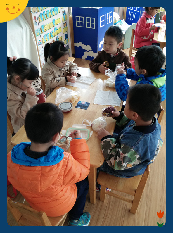 今天是我们第一次将早饭带到班级来和小朋友共同分享品尝哦!