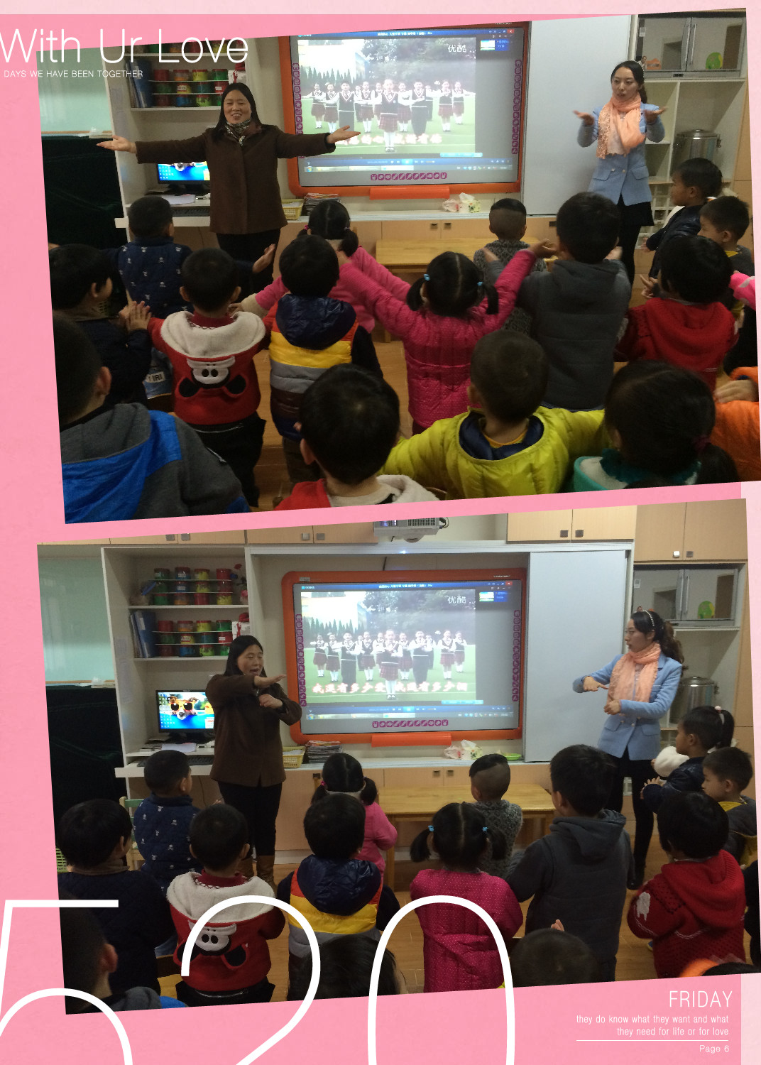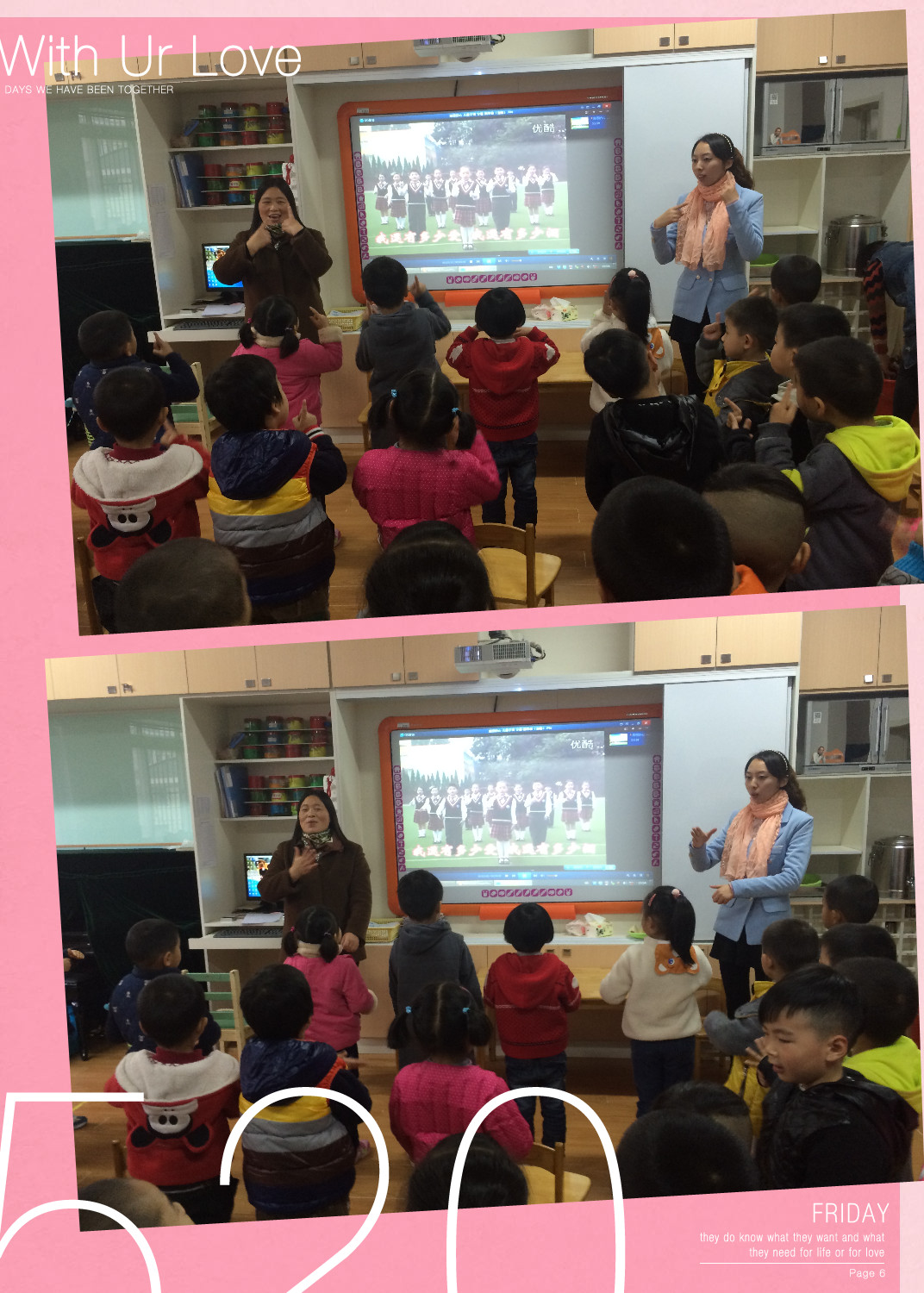 老师们运用“故事、谈话、儿歌、”等多种途径,引导孩子了解感恩节的由来,引发孩子主动关注周围人对自己成长付出的一切,用好听的话说对自己感谢的人说一句感恩的话、用美丽的画笔做一张感恩爱心卡,教幼儿学唱《感恩的心》歌曲和学会做《感恩的心》手语操.......等等一系列活动,表达自己的感恩之心。