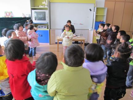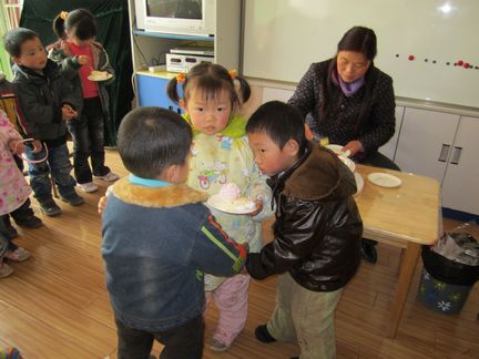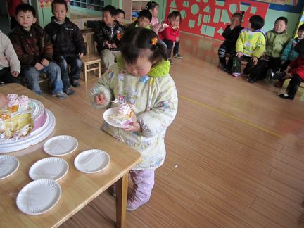 马瑞在为我们分蛋糕! 我们在为马瑞唱生日歌,祝她生日快乐!