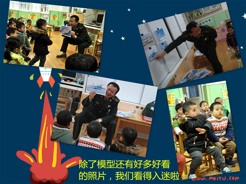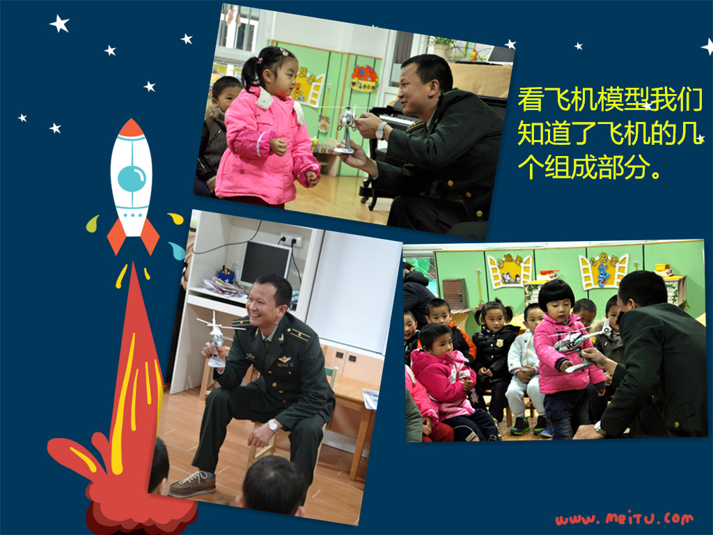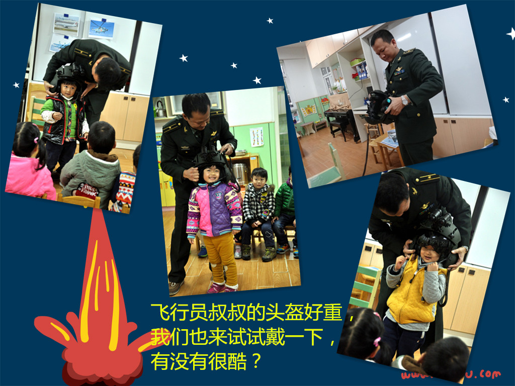 今天我们班来了一位特别的“老师”,他是一位飞行员,也是一位军人,他是我们班双胞胎——刘祥腾和刘祥跃的爸爸,他今天要来给我们小朋友介绍有关飞机和飞行员的知识给我们知道哦!太兴奋啦!