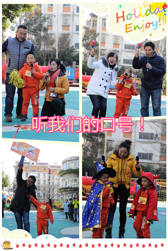 比赛要开始了,我和爸爸妈妈一起喊口号,你们的口号是什么呢?