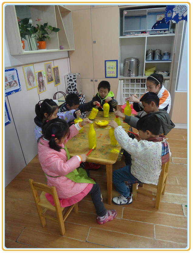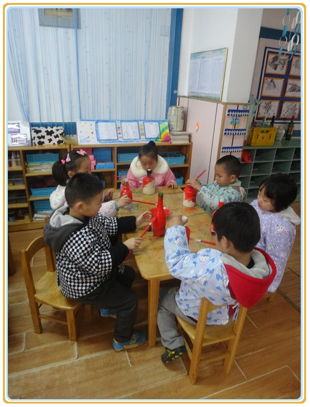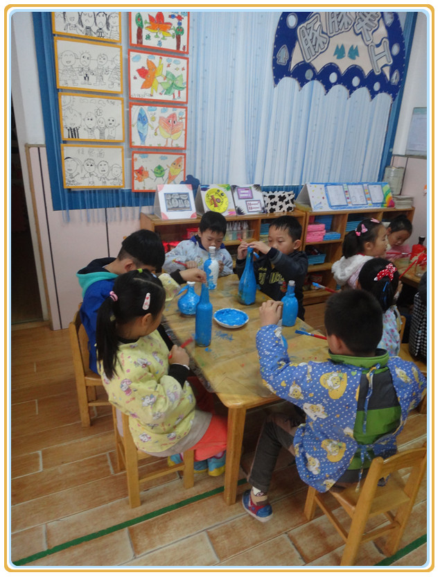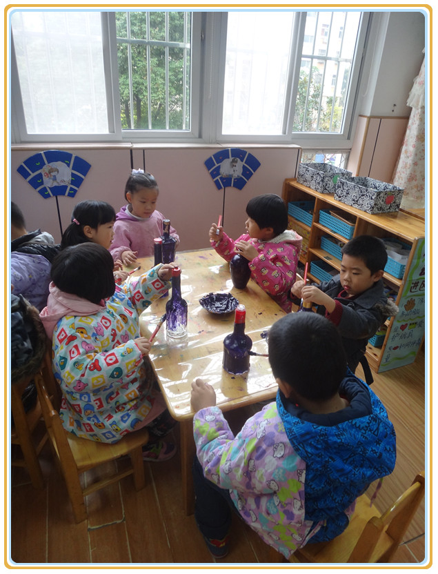我是一个粉刷匠,粉刷本领强,我要把那小瓶子刷的很漂亮。今天我们是一个快乐的小粉刷匠哦,我们把那普通的瓶子刷了漂亮的颜色,看看你们还能认出他们原来是什么样子了吗?
