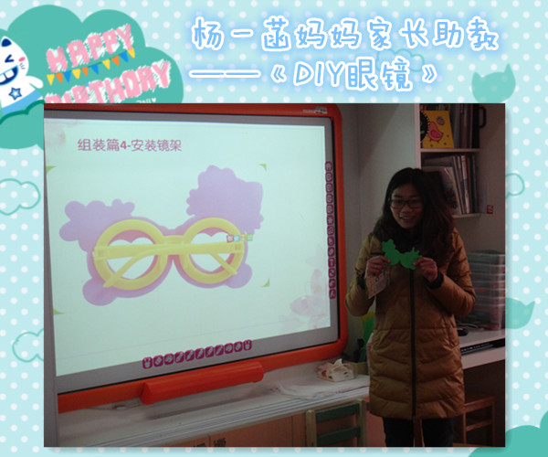 家长是幼儿园重要的合作伙伴,家长的职业、阅历、特长对幼儿园来说就是一笔丰富的教育资源。为了促进家园沟通,丰富教育资源,开阔幼儿的视野,促进幼儿的全面发展。大二班在本周邀请了杨一菡妈妈来园组织了一节《DIY眼镜》的手工活动,受到了孩子们热烈欢迎! 我们赶快一起到现场去看看吧! 有趣的活动结束了,下次会是哪位家长来我们班助教呢?让我们一起期待吧! |