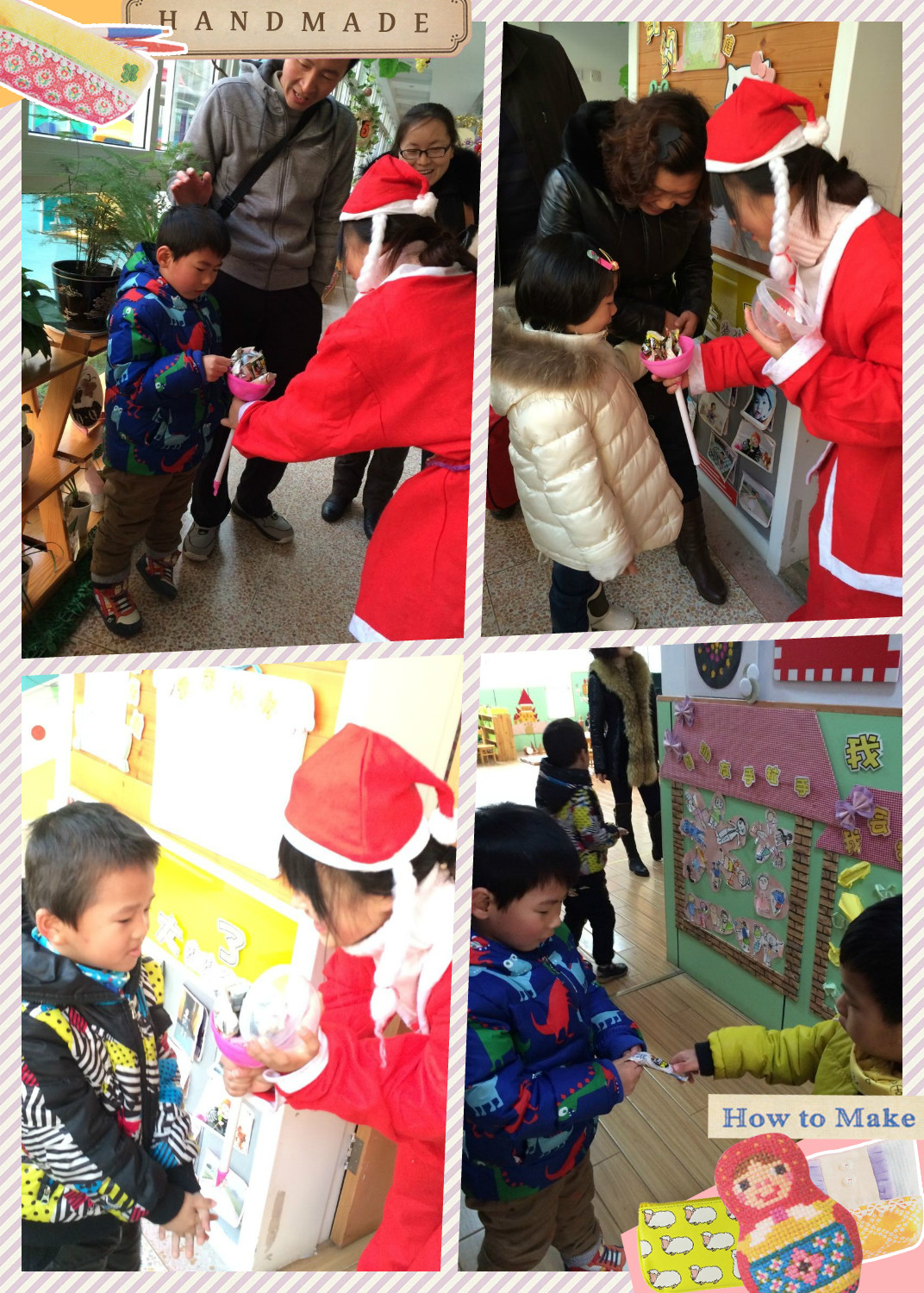 12月25日是圣诞节。小朋友们的意识里认为圣诞节可以见到圣诞老爷爷并且能收到老爷爷送的圣诞礼物。我们幼儿园在圣诞节来临之际更是举办了各种活动。我们班更是早早的营造了节日的氛围。