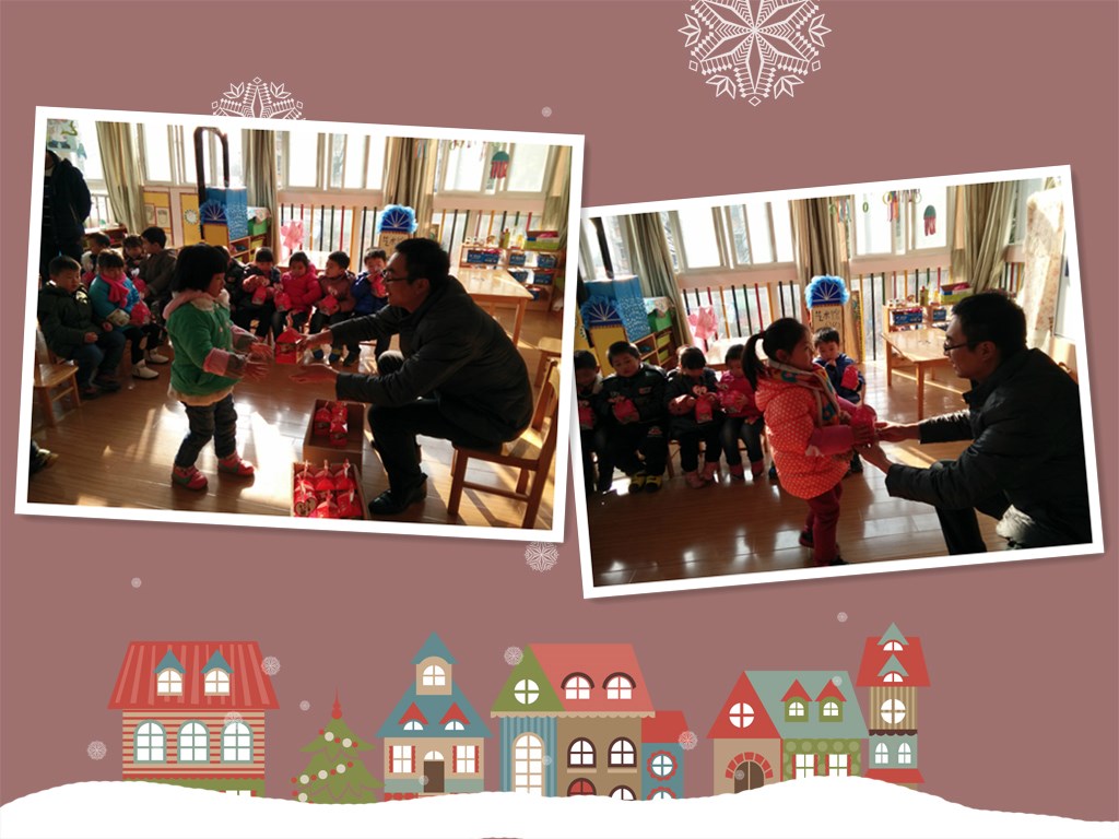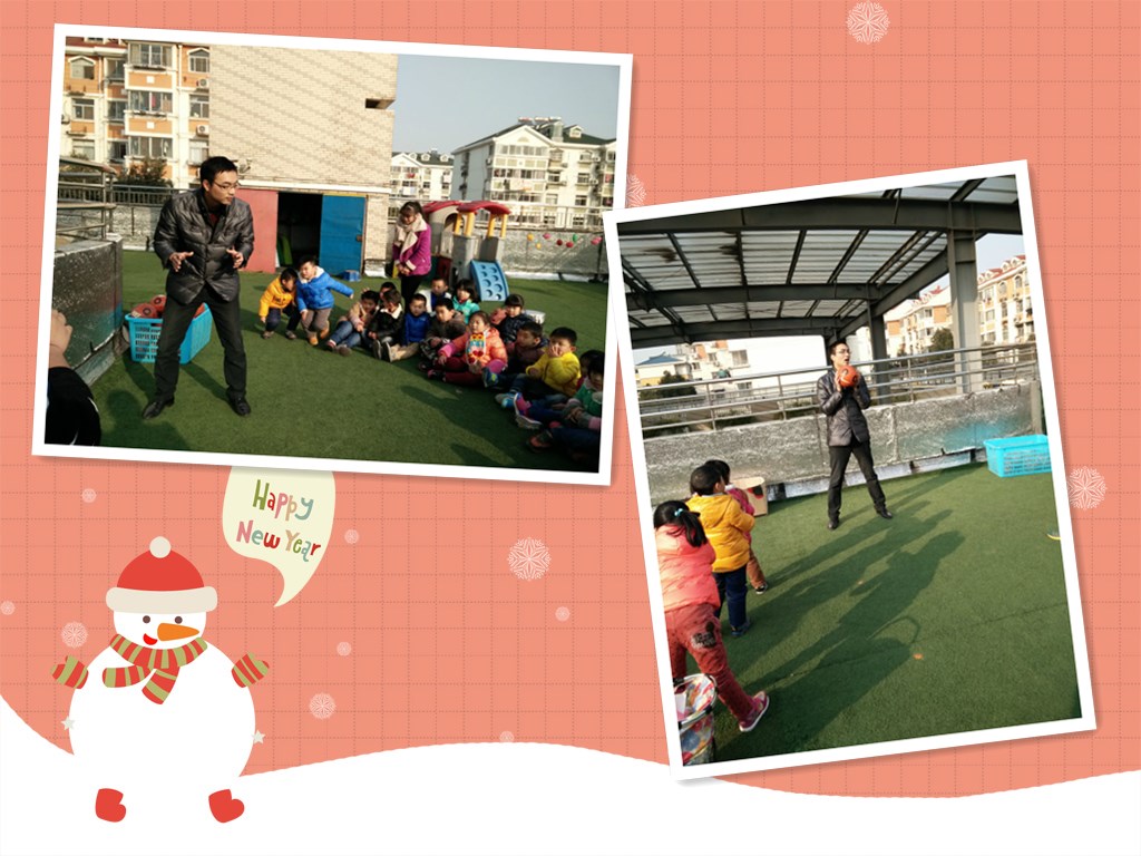 今天是圣诞节!先祝大家圣诞快乐哦! 王卓睿爸爸来助教啦! 今天有什么新本领交给我们呢? 原来是传球! 叔叔在给我们讲解动作要领:腿分开,身体向前倾,双手微微向前张开,眼睛看准球...... 我们也来试一试,找个好朋友。 为了奖励我们,叔叔精心为我们准备了圣诞礼物。 收到礼物好高兴哦! 是什么呢? 打开一看,哈哈,是平安果哦!