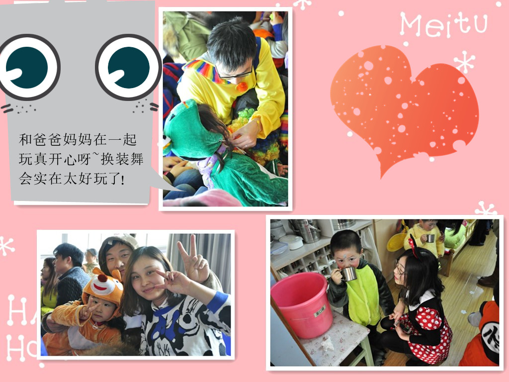 今天真开心,因为每个小朋友都被施了魔法,变成了...哈哈!因为我们要参加幼儿园的化装舞会,所以我们和爸爸妈妈都和以前不太一样哦!你想知道我变成什么了吗?那就快来看看吧!