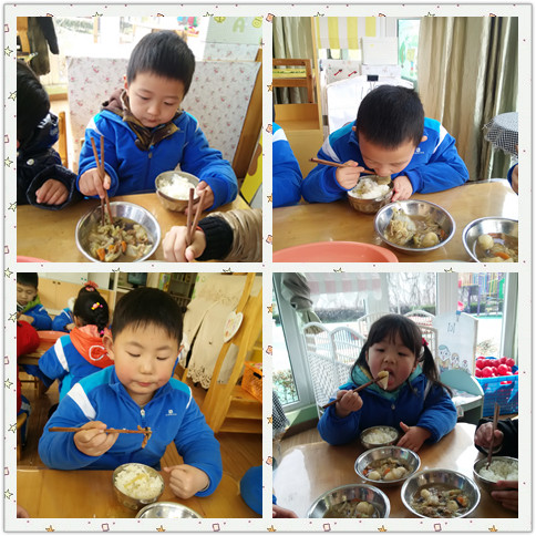开学啦!现在我们又长大一岁了,从今天开始,我们就要用筷子吃饭啦!想想,其实……还是有点儿难的,不过相信我们一定会克服它!