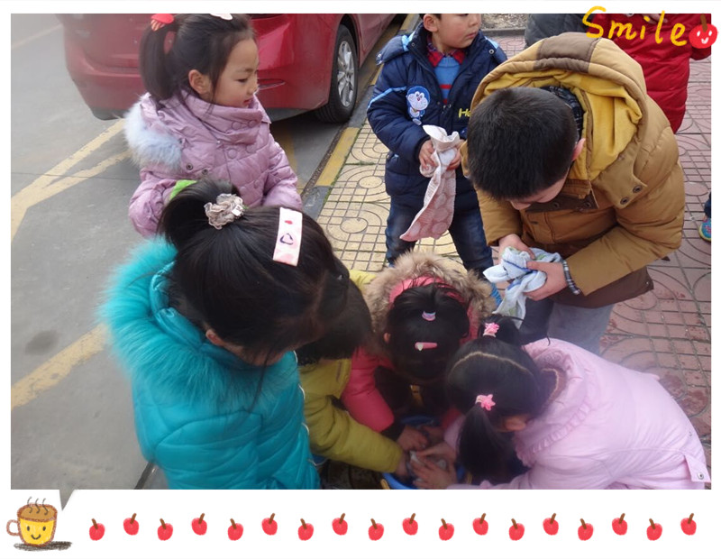 今天,在老师的陪伴下,我们走出了幼儿园,带着抹布为社区的栏杆、宣传栏擦一擦灰尘。看,正在劳动的我们!