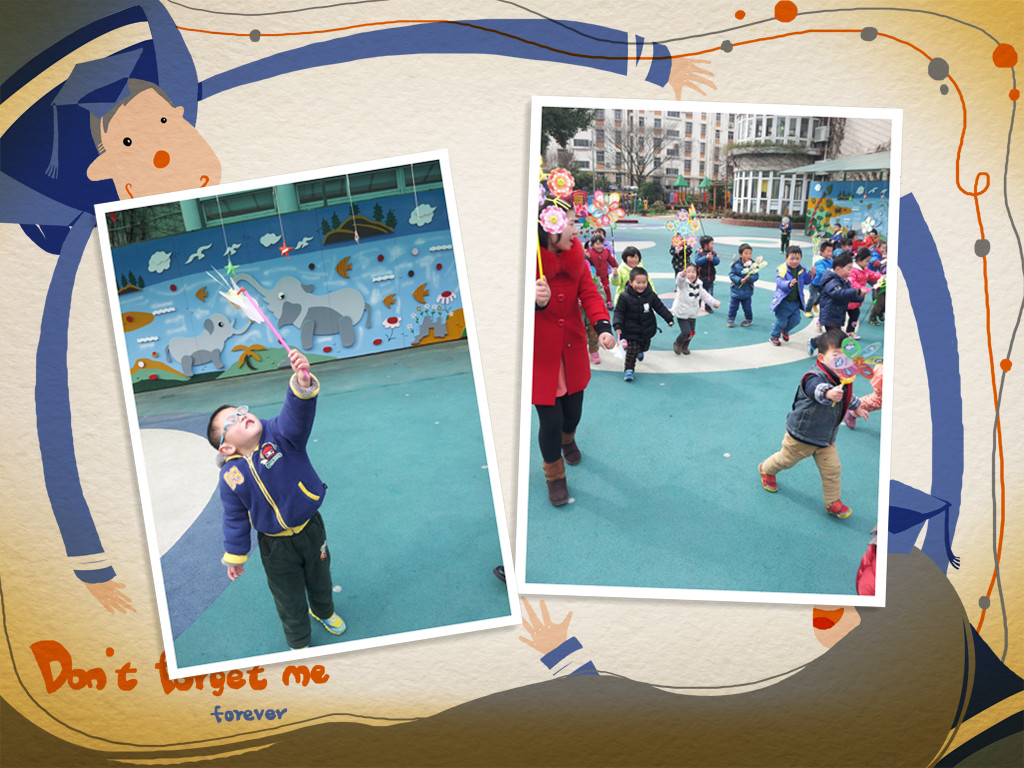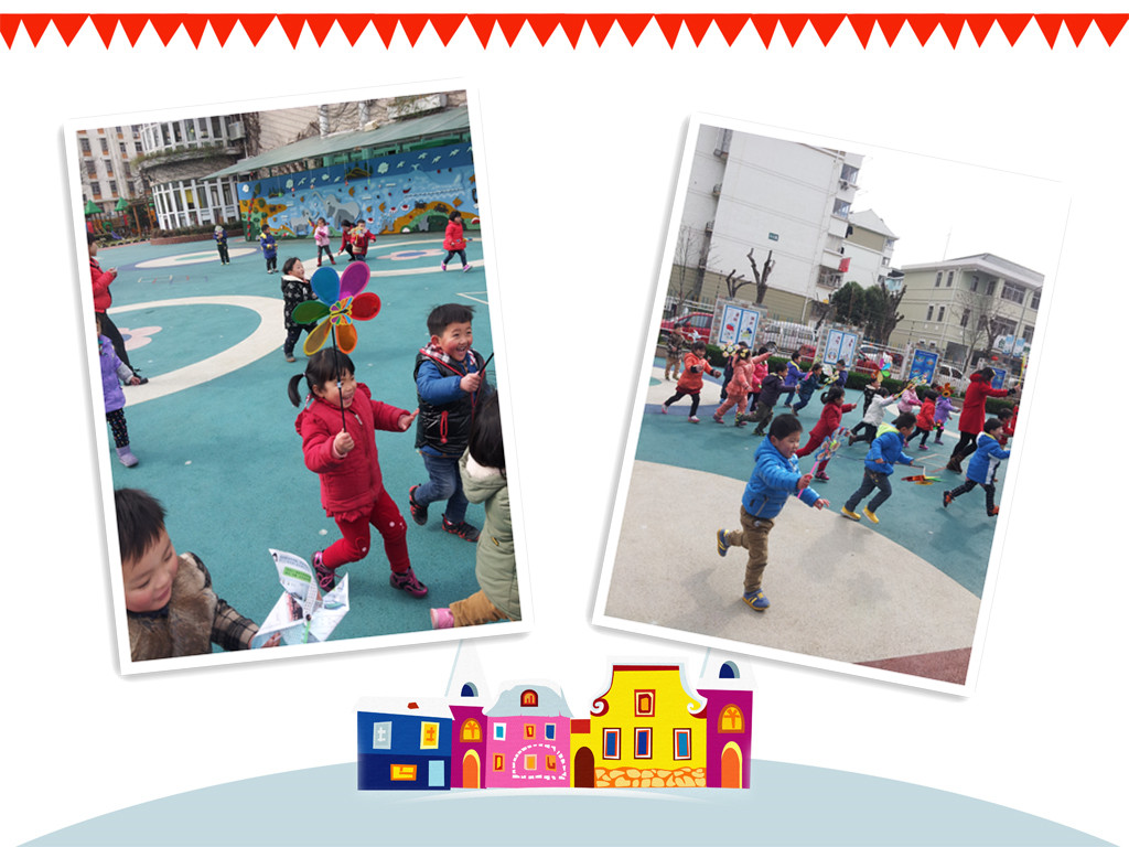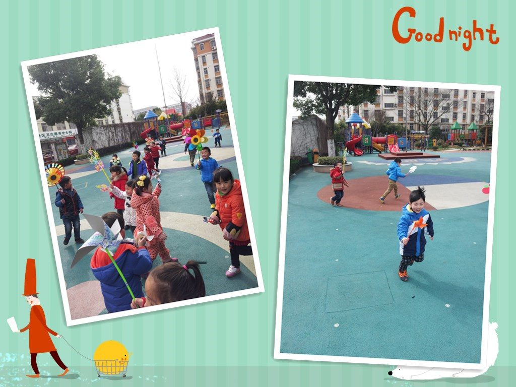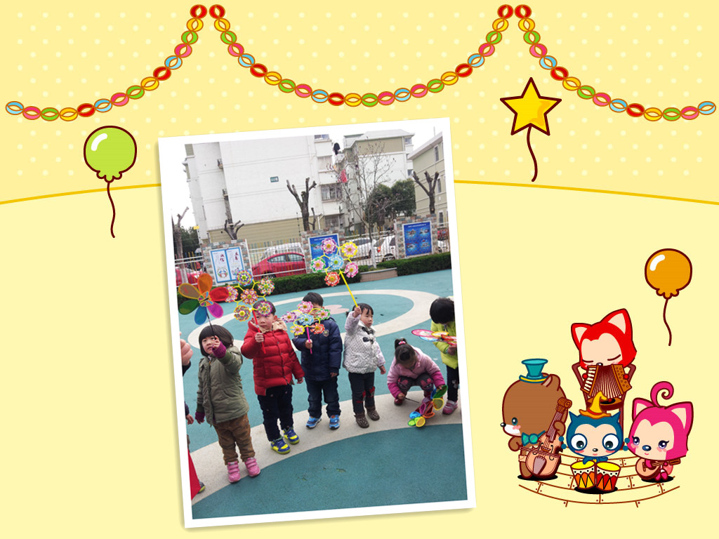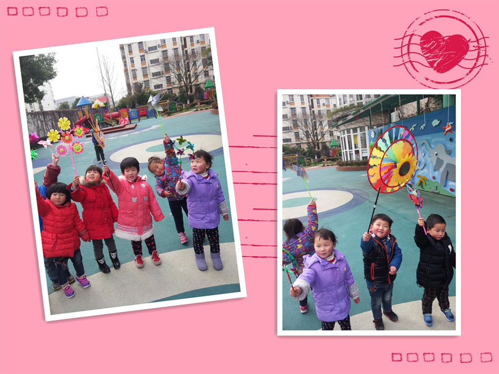 今天我可开心啦,因为我和老师和小伙伴们一起玩好玩的风车。我们了解了风车转动的方法,可以吹一吹,还可以跑一跑,风车就转动起来啦!瞧,我们在比赛,看谁的风车转得快哦!