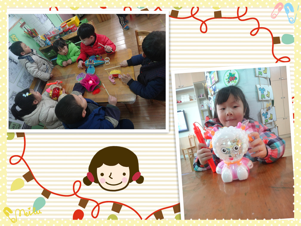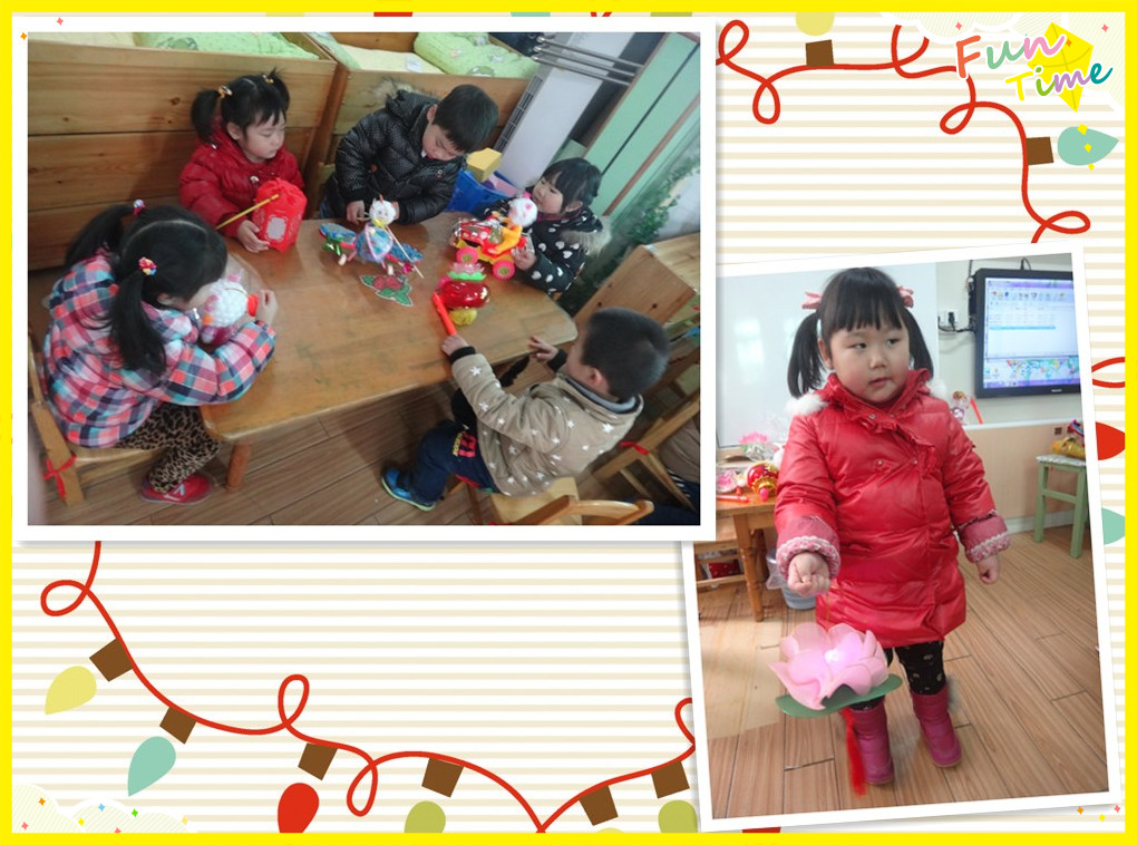 爸爸妈妈给我们每人都准备了一个花灯哦。