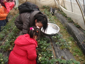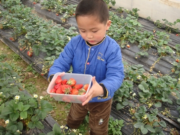植树活动结束后,我们还去了大棚采摘草莓呢!