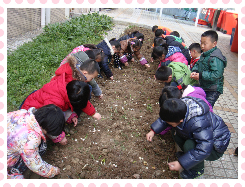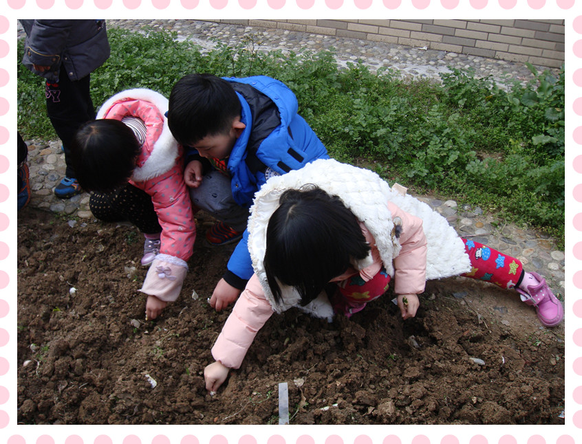 一大早我们就拿着大蒜头来到了我们幼儿园的种植园地!开始播种种子啦!!