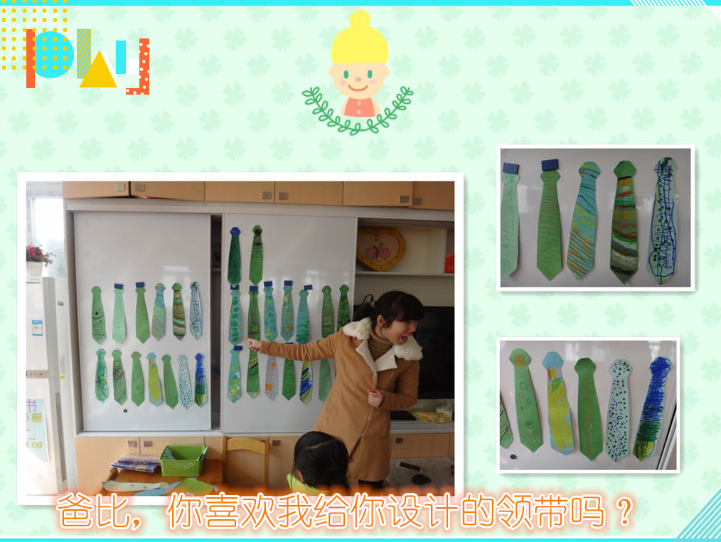 哇!我们设计了这么多种领带,每个都不一样哦,因为我的爸爸在我心中是最特别的,最棒的!