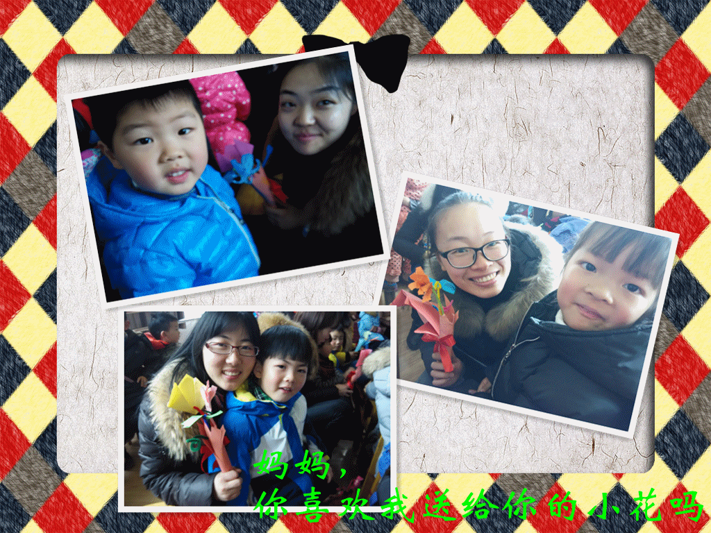 3月8日,对于我们班的妈妈们来说是一个特别的日子,因为在幼儿园里宝贝们早早地就准备好了小惊喜等待着她们。当妈妈们来到幼儿园时,孩子们每人手上拿着自己亲手做的花束送给妈妈时,妈妈们的眼眶湿了,她们的心融化了,因为宝贝们是这样的懂事、贴心、知道感恩。