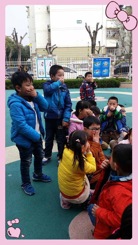 随着警报声响起,我们的孩子和老师迅速地排着队按照规定的路线进行撤离,短短的四十秒钟,我们所有的人都安全的撤离到了大操场上。安全,是开展所有活动的保障,是工作中的重中之重。在这个“安全教育周”中,我们班也开展了各种形式的教育活动,如疏散演练、案例故事讲述等等。 手捂口鼻,快速的跑到空旷的场地。 你瞧!我们一个个多会保护自己啊! |