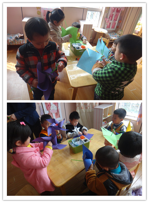 看,我们自己在做风车哦,漂亮吗!