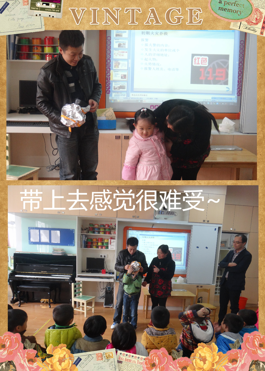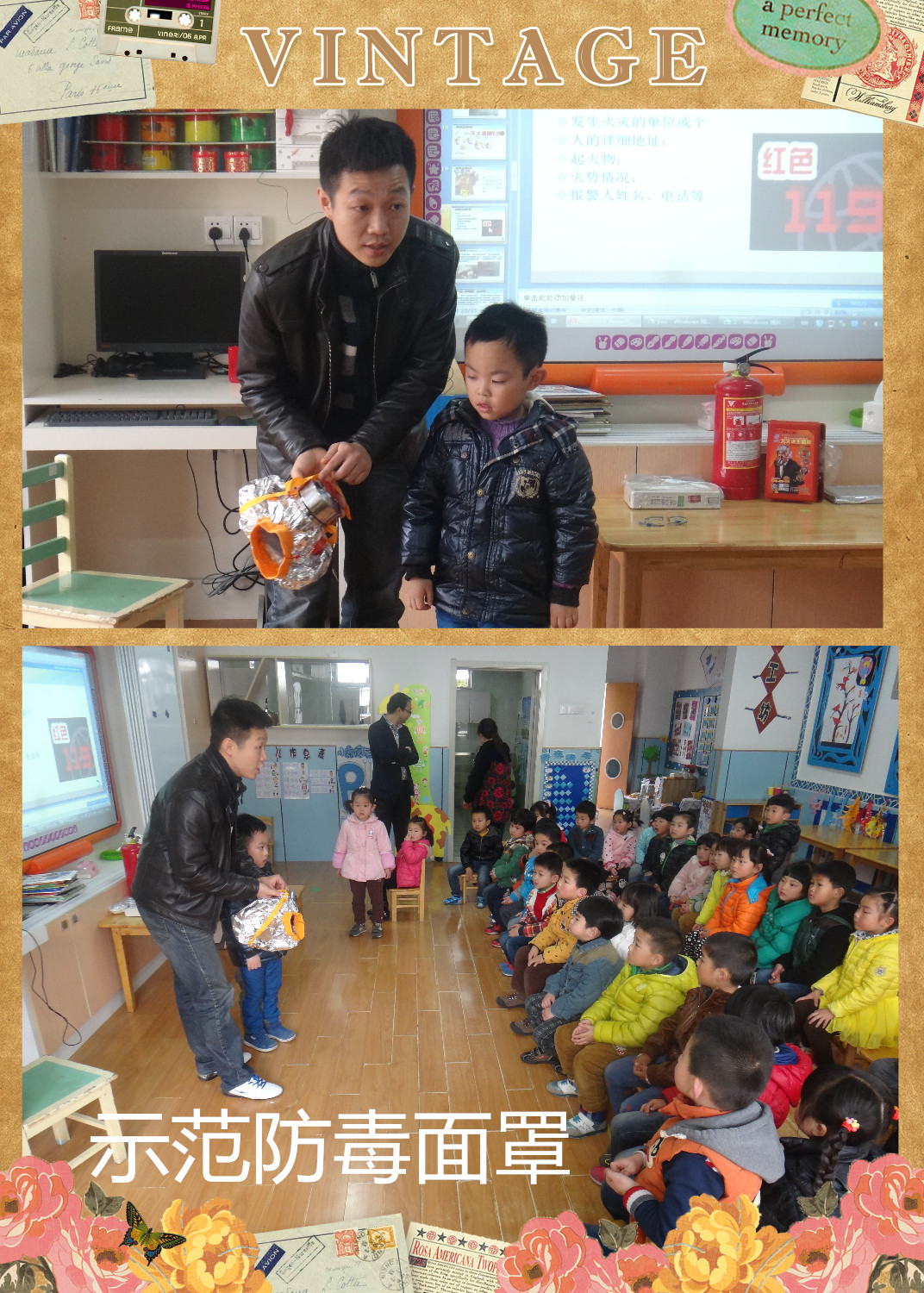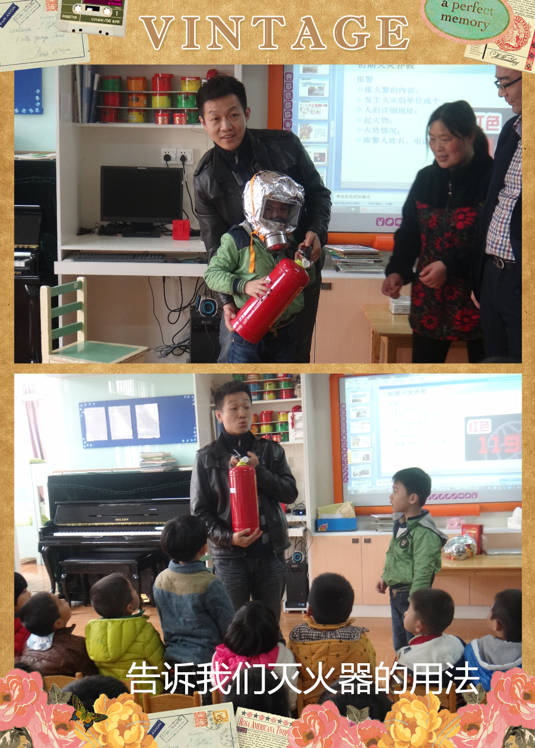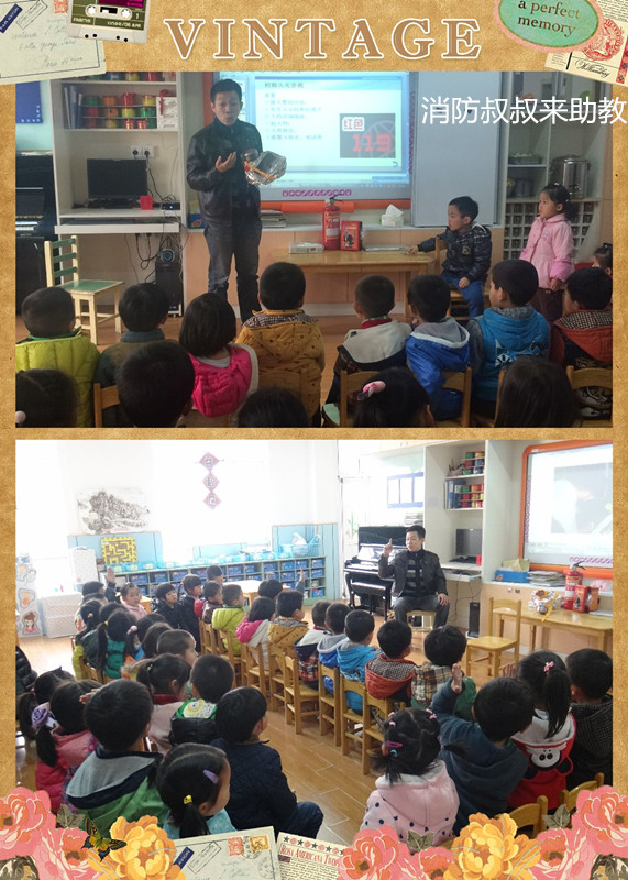 今天我们班级来了许多客人老师,睡过午觉以后客人老师来到我们班级,客人老师夸奖宝贝们真的长大了,午睡以后可以自己整齐快速的穿衣服、整理衣服。之后我们到户外进行活动,向客人老师们展示了我们最近一直在练习的早操律动!我们动作到位、精神饱满向客人老师们展示了自己最棒的一面!之后史浩之的舅舅作为一名真正的消防员给宝贝们学习了许多不知道的消防知识,带我们认识了消防器材:灭火器、防毒面罩等,让宝贝们自己亲手体验操作灭火器的正确使用方法。同时也知道了许多在火灾中保护自己逃生的方法。最后孩子们都觉得这位客人老师太厉害啦!
