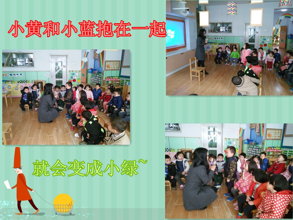 今天,许家源妈妈来到我们班,给我们带来了一个有趣的绘本故事和神奇的魔法,绘本故事的名字叫《小黄和小蓝》。 好听的绘本故事听完后,许家源妈妈还给我们用颜料变了一个神奇的魔法,想知道这个魔法怎么变嘛?我来告诉你吧。 拿棉球棒在黄色的颜料沾一下,涂在纸上,再用另一支棉球棒沾一下蓝色的颜料,最后将纸对折,将两个颜料抱一抱,你会发现一个神奇的现象,就是它们变成了绿色~ 这个神奇的魔法你学会了吗?是不是很有趣啊~欢迎许家源妈妈下次再来我们小(2)班,给我们带来更多好听的故事跟游戏。 |