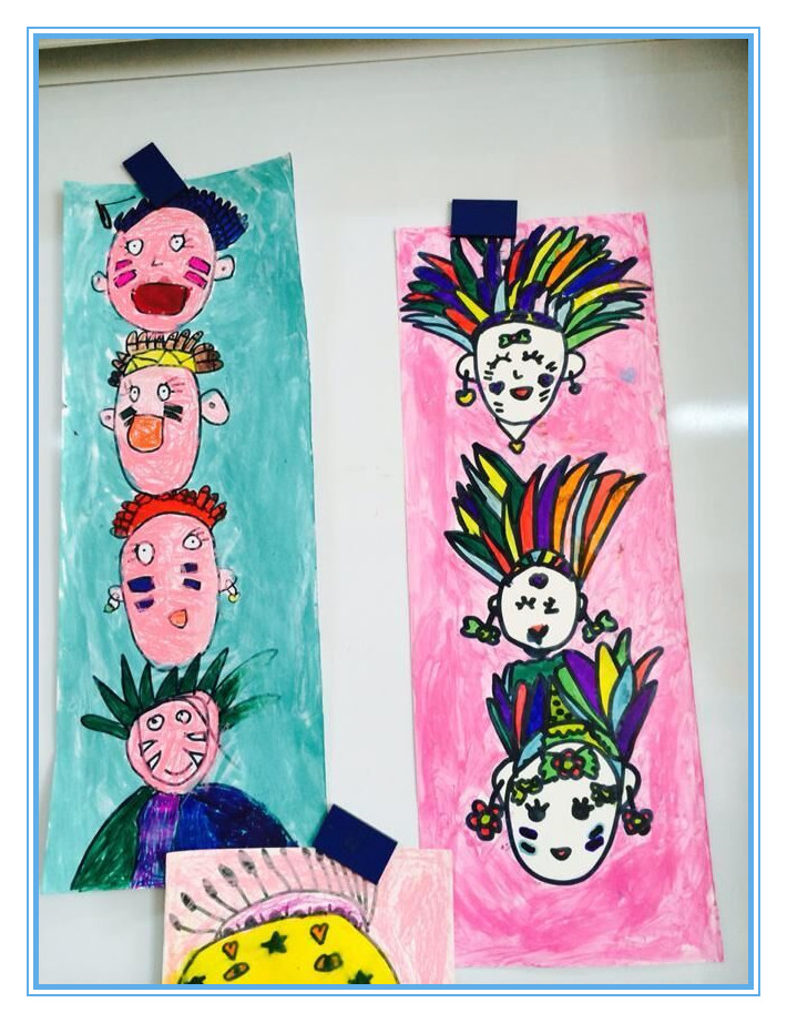 你知道印第安人什么样子吗?哈哈,我们知道哦!今天,我们自己动手分工合作画了印第安人。他们和我们国家的人有点不一样,他们头上喜欢带着有羽毛的帽子,身上穿的服装也是很鲜艳多彩的。