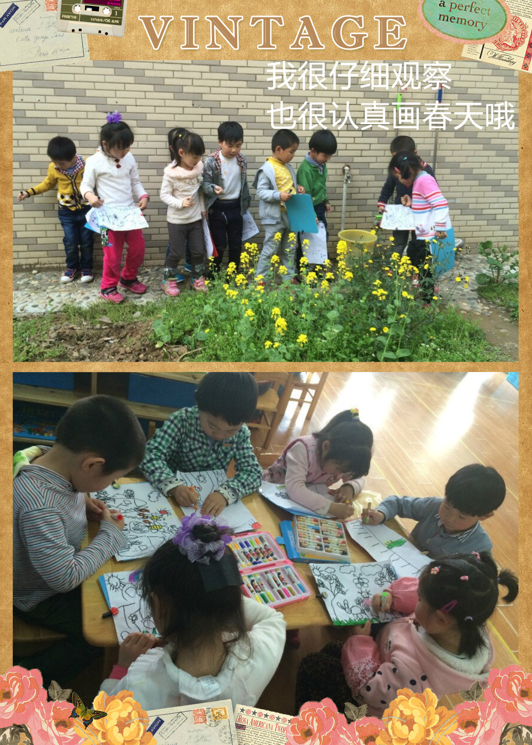 通过活动的开展培养了孩子观察、协调、操作的能力,在户外幼儿园内找春天的这种形式激发了孩子的兴趣、陶冶了孩子的情操。让孩子们感知了春天,认识了春天,也走进了春天。