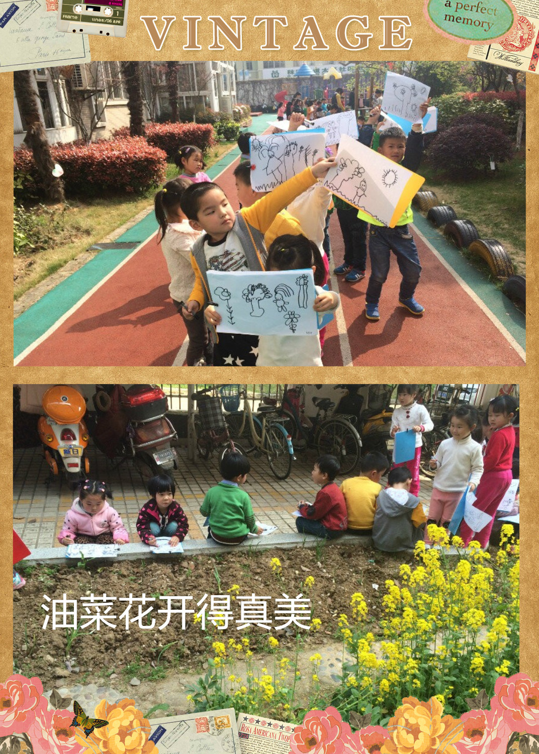 孩子们在老师的带领下运用自己的感官去看看、说说、听听、闻闻、摸摸寻找春天,他们发现了杨柳枝条上长出了嫩芽,树木吐露新芽,小草从泥土里钻了出来,黄黄的油菜花报告了春天的信息,白色的、紫色的野花绽开了笑脸,小朋友置身于色彩斑斓的大自然中,异常的开心与兴奋,让孩子们在大自然中学到了知识,了解了春天带给自己的美好。