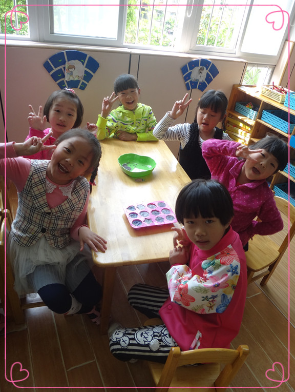 接下来就是我们动手做香皂啦!我们也照着范妈妈的样子做起来了。看我们也可以做出想象的肥皂哦!