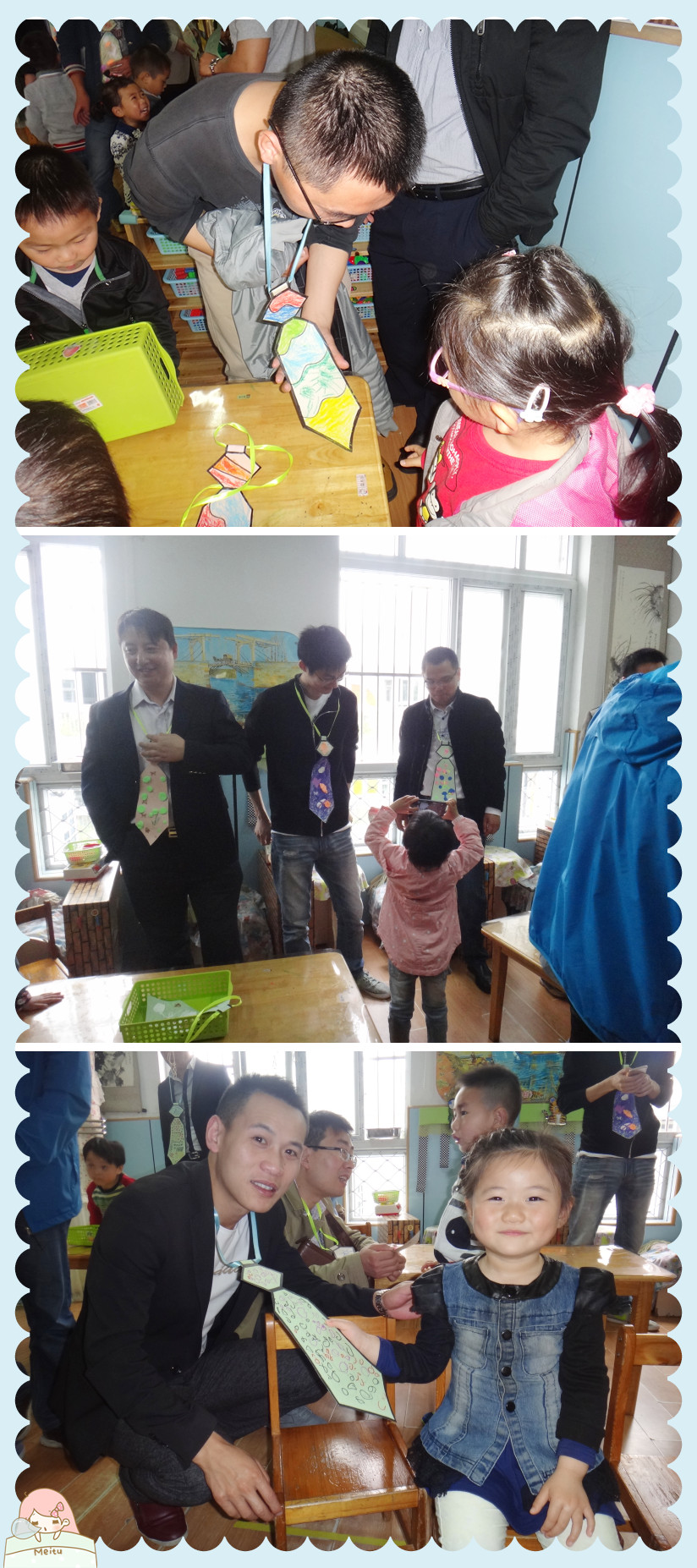 今天一大早我就起床了,因为爸爸要和我一起到幼儿园参加活动!这真是难得的机会,爸爸平时工作很忙,借此机会,刚好可以陪陪我。我和爸爸早早的来到了幼儿园,发现所有小朋友都特别的开心!今天我们都要把最好的一面展现给爸爸看。 头一天,在老师的帮助下,我们都给爸爸做了好看的领带,在活动中,我们亲手给爸爸带上了,爸爸和我都很高兴,我还对爸爸大声地说了一句:“爸爸,我爱你”! 我和爸爸还有老师们一起来到了操场上,我也当起了小老师教爸爸做早操,和爸爸一起锻炼身体。老师还给我们每个人发了一张任务卡,刚开始我们觉得很难,但是有爸爸陪着我一起加油,我们很快就完成了任务,得到了老师的奖励。这真是难忘的一天! |