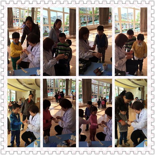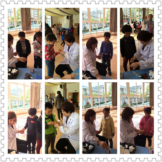 医生阿姨告诉我们:抽血后要及时的用消毒棉花轻压住,我们都做得很好。