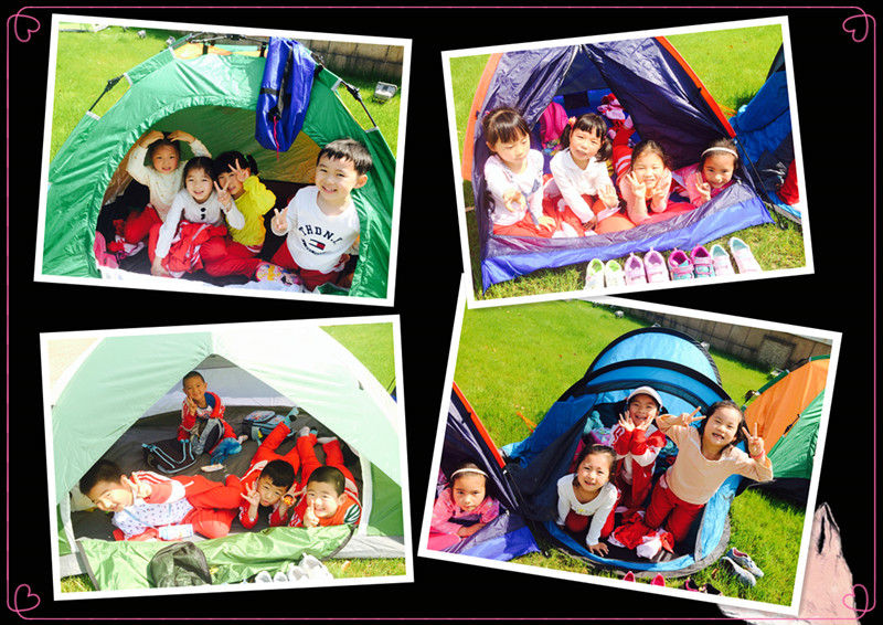 哇!志愿者爸爸妈妈们早早的就为我们扎好帐篷啦!真凉快,春天的风吹在身上暖暖的!