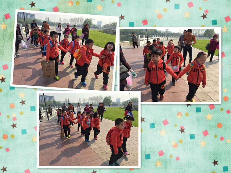 “走、走、走走走,我们小手拉小手,走、走、走走走,一同去郊游。”在这阳光明媚,春暖花开的日子里,我们中班年级组进行了远足踏青活动,活动地点——白龙广场,请看前方记者发回的报道。