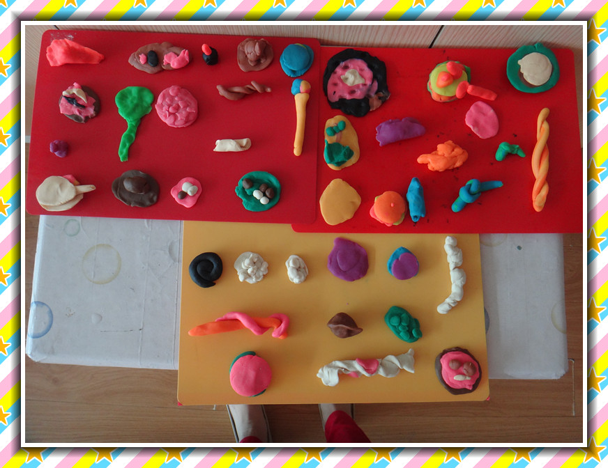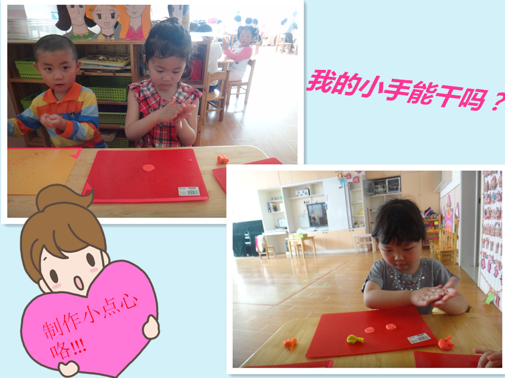 今天我们跟着老师做了很多可爱的小点心哦!老师让我们想一想,我们平常都看过或者吃过什么样的小点心,然后用油泥把它做出来。我们班的小朋友都很厉害,有的小朋友做成了饺子,有的小朋友做成了麻花,还有的小朋友做成了可爱的小蛋糕,琳琅满目的蛋糕让我们看的眼花缭乱,快跟我们一起看一看吧!