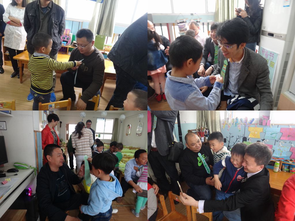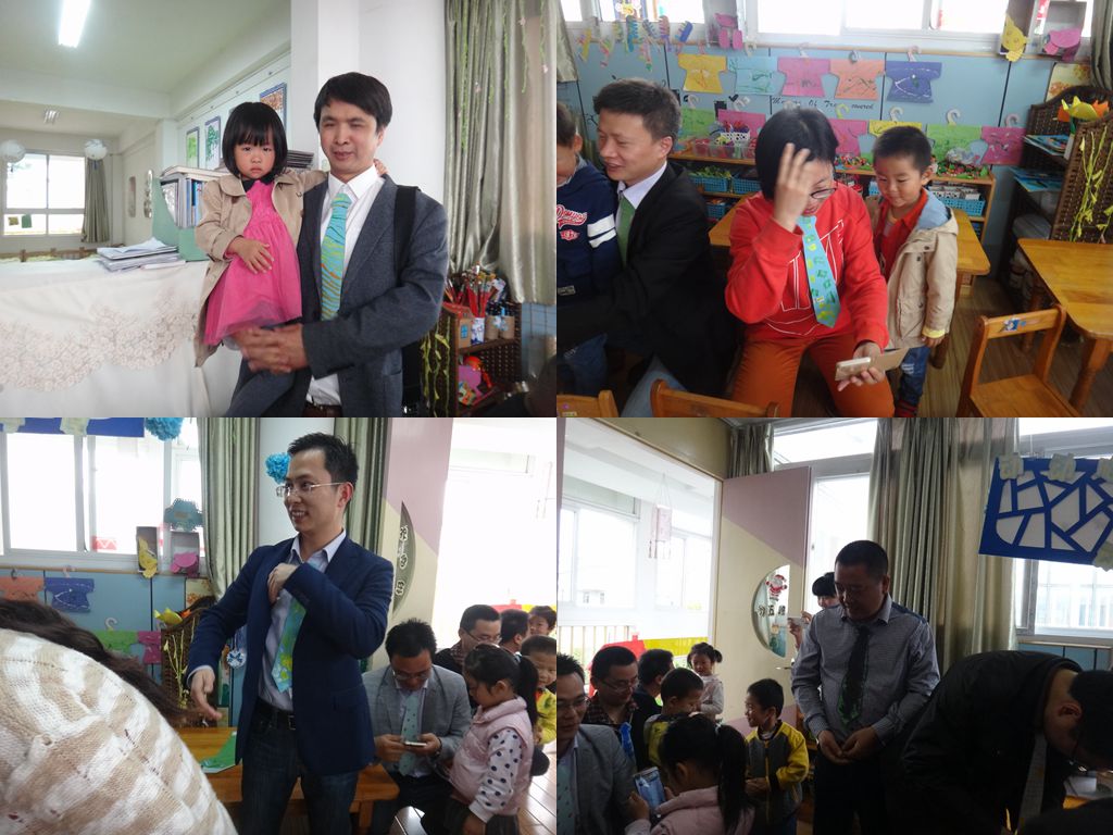 小宝贝听完信之后,纷纷拿出自己亲手制作的小礼物——领带,献给最亲爱的爸爸并深情对爸爸说:爸爸,我爱你!爸爸们的脸上荡漾的是幸福的笑容。