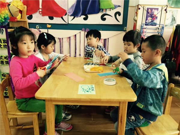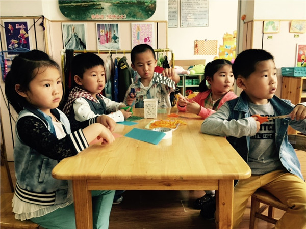 “老师,看,我的项链上面有亮亮的宝石!”,“老师,看我的,我的项链上有闪闪的星星”、“老师,我的项链上面有三角形,还有长方形呢!好不好看啊?”2015年5月8日上午,中四班的教室里传来了一阵阵孩子们雀跃的欢呼声!原来,他们正在进行每周一次的特色活动,这次的活动主题的“创意项链”,孩子们正品味着成功制作“创意项链”的快乐!快来我们这里一睹为快吧!相信看完后,您也有想做一条创意项链的冲动呢!