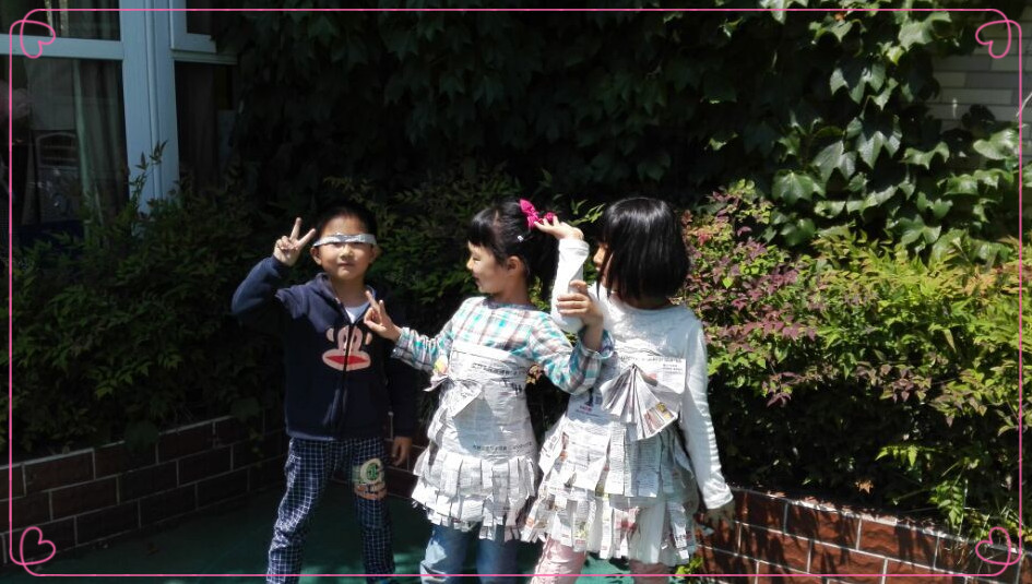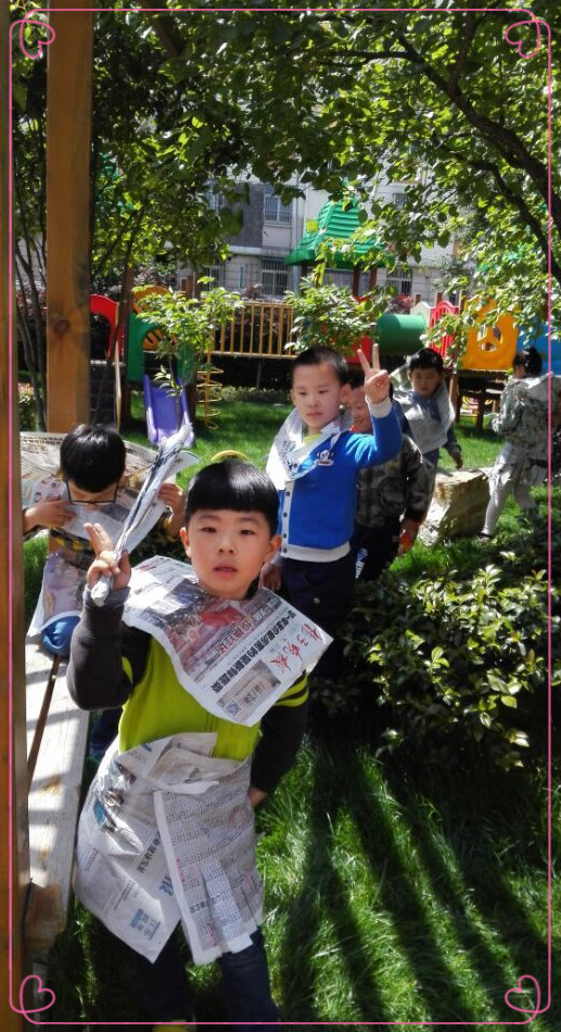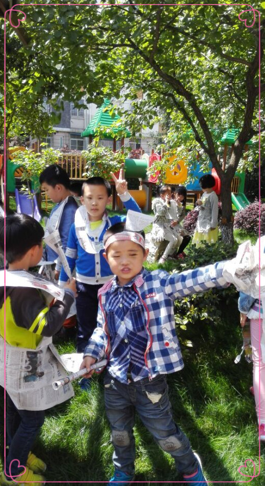 今天我们带来了好多的报纸,知道我们要做什么吗?悄悄地告诉你,我们今天要来当一名小小的设计师哦,别看我们年龄小,我们的本领可不小。看,下面是我们自己设计的服装哦。