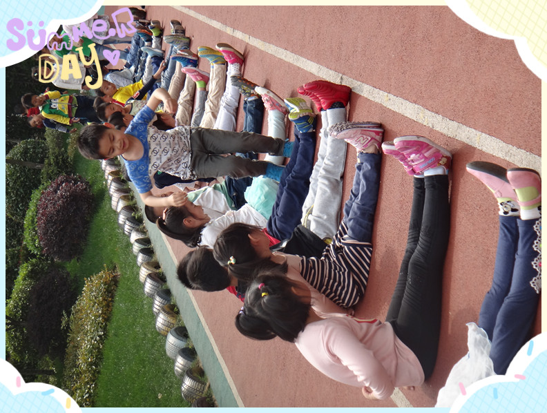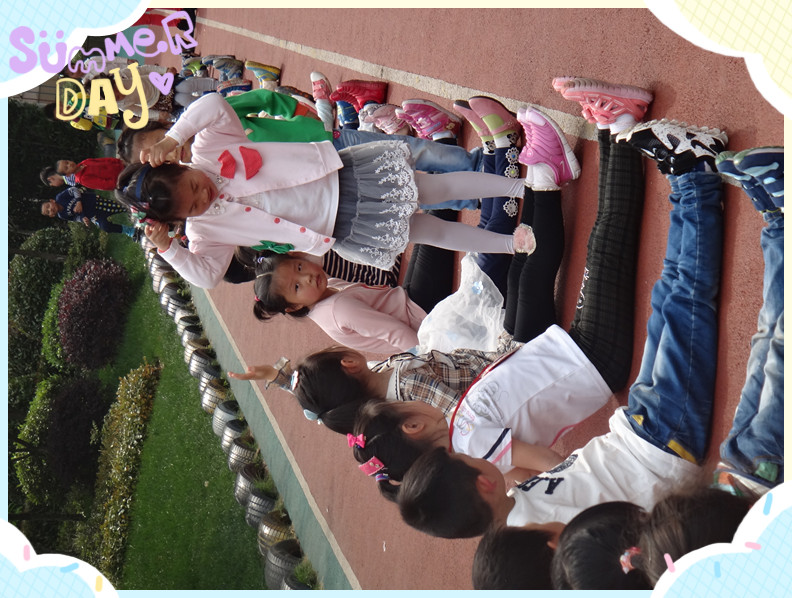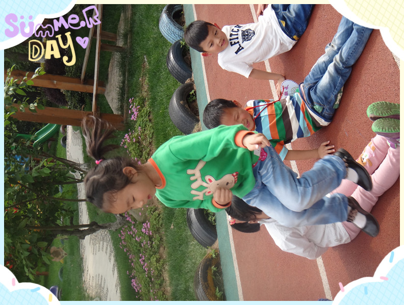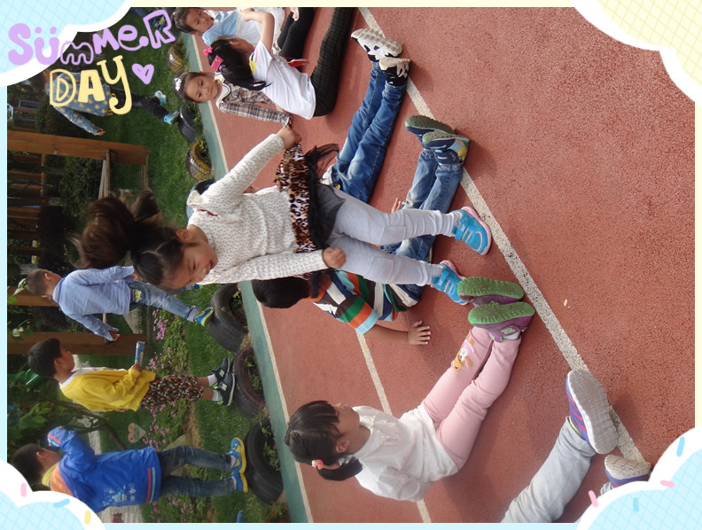 对了,我们在玩跳门槛。我们大家排排坐,小伙伴们从我们的身上跳过。跳的时候可要得小心了,不然,一不小心就会踩到同伴的小手了。