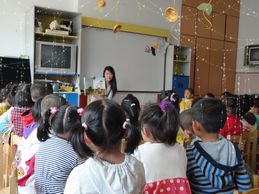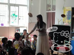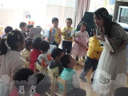 瞧!妈妈老师还给我们带来了礼物,我们在玩有奖竞答的游戏呢!
