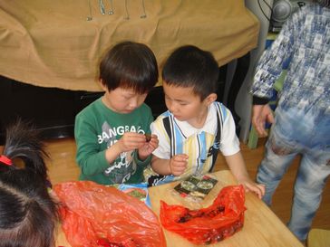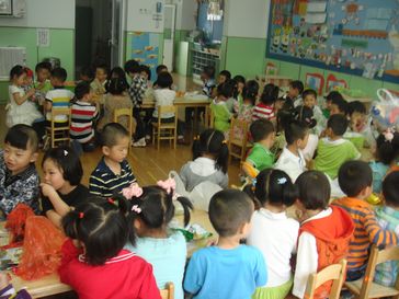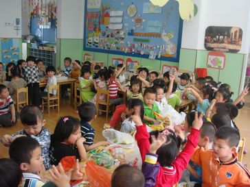 六一是我们自己的节日,和小七班的好朋友一起分享好吃的,真开心!