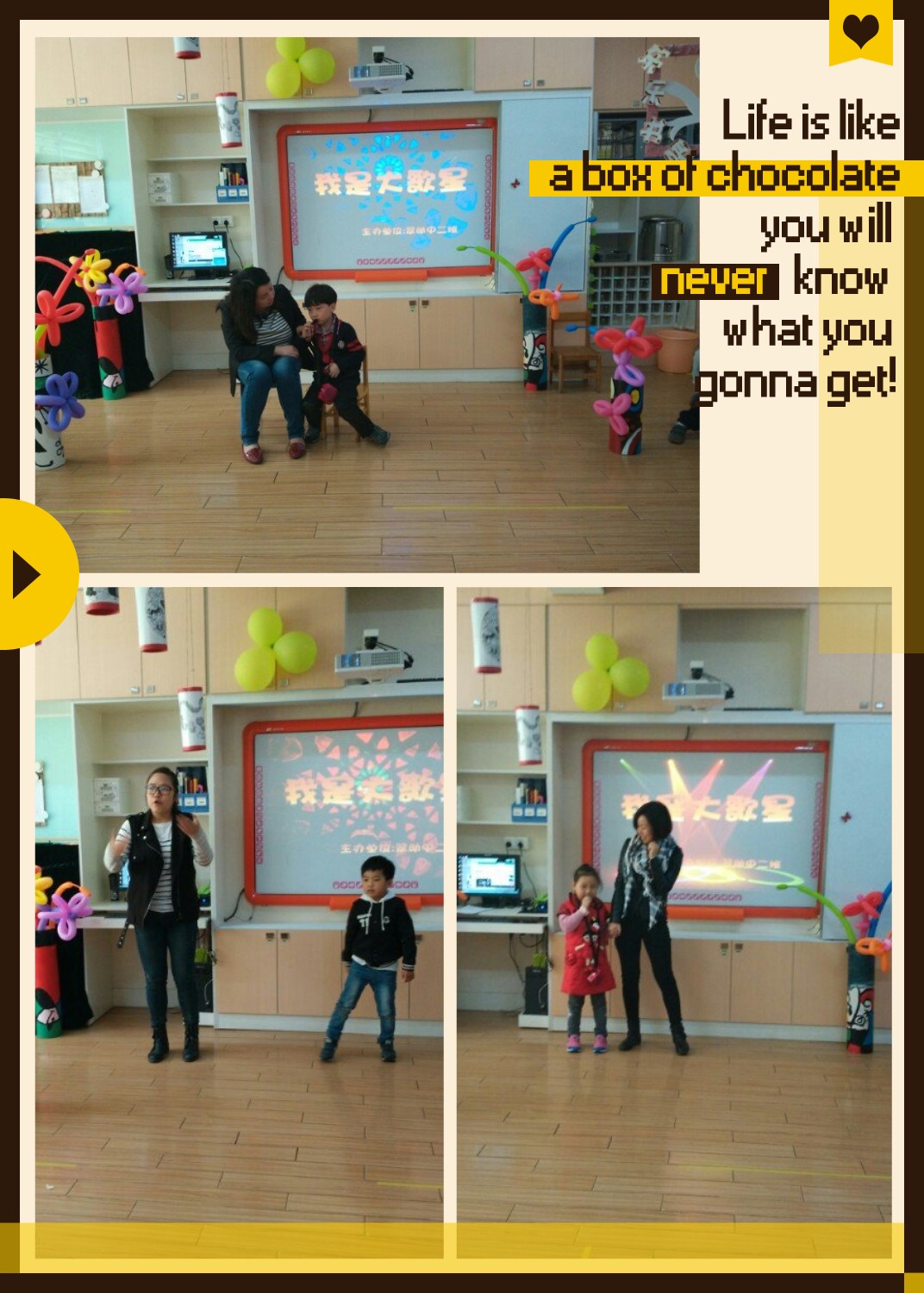 我还有点紧张,妈妈为了鼓励我,陪着我一起表演,妈妈,谢谢您!