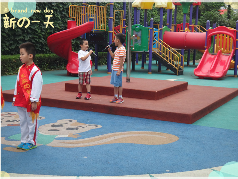 2015年6月15日,星期一,南京市翠屏山幼儿园升旗仪式开始了。今天的国旗下讲话由中五班的陈华天和曲米乐两位小朋友主持。瞧他们两站在国旗下昂首挺胸,一副自信满满的样子。今天两位小朋友讲话的主题是——父亲节!马上就是父亲节了,是父亲给了我们生命的力量,指引了我们成长的方向!在米乐和天天的对话中我们深深地体会着父爱伟如青山,圣洁如冰雪!今天在这庄严的国旗下,曲米乐和陈华天代表翠屏山幼儿园的所有小朋友对天下的父亲们说一句节日快乐,你们辛苦了!最后一首《爸爸去哪儿》送给天下所有的父亲!