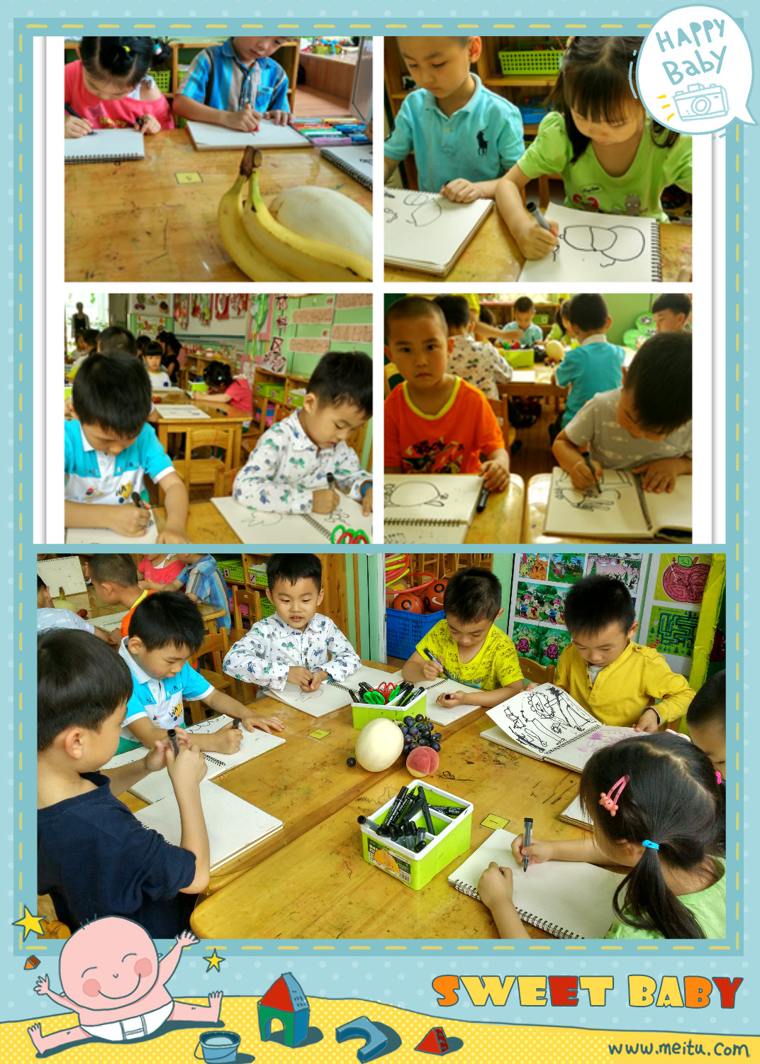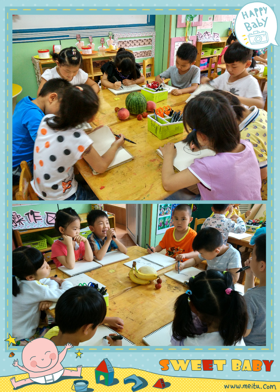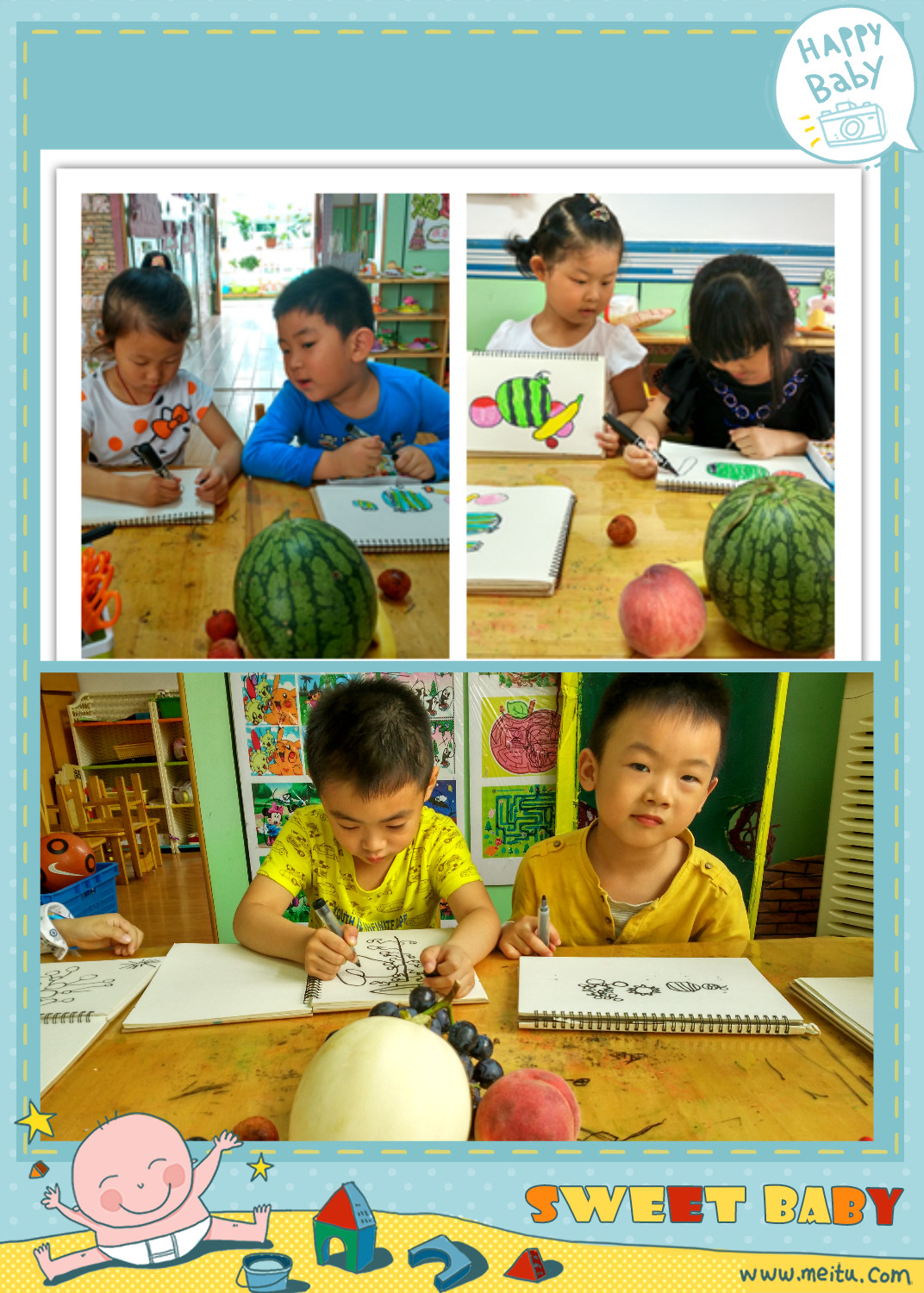 我们在水果写生画呢!我要画出大大的西瓜,香甜的荔枝、美味的葡萄……