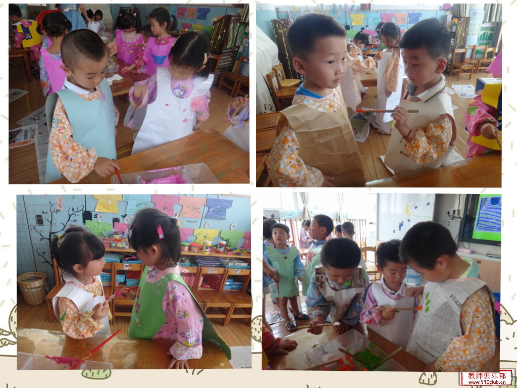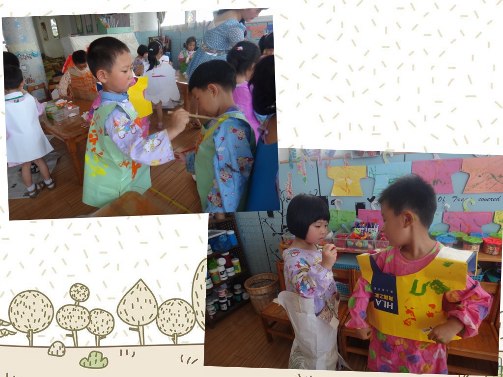 我们要根据小模特的要求,用点点、圈圈、直线、曲线、网格线等等来装饰小背心,这不仅考验我们设计师的功底,也同样考验我们的小模特。因为要想设计师装饰的好,小模特们也要一动不动的。这可比在纸上装饰更加有趣,更加刺激呢!