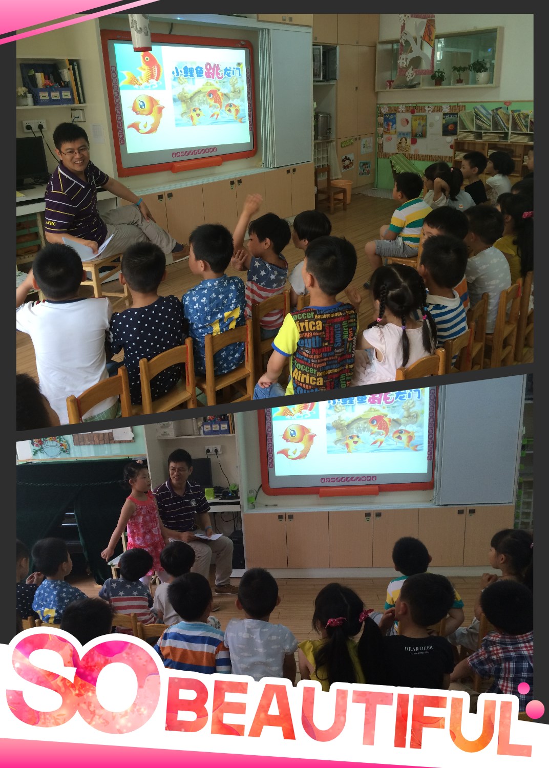 石头爸爸让我们用笔画一画鱼的身体,还走到我们身边和我们聊一聊鱼的秘密呢。