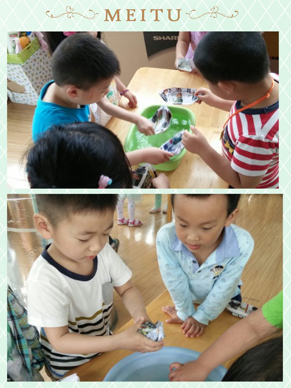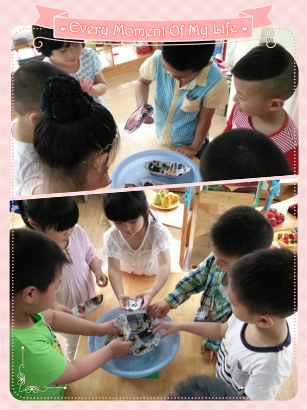 今天我们上了一节有趣的探索活动,浮与沉。哪些东西可以浮在水面上,那些东西可以沉到水里?我们进行了激烈的讨论。