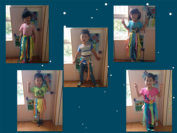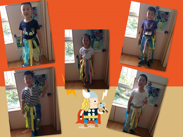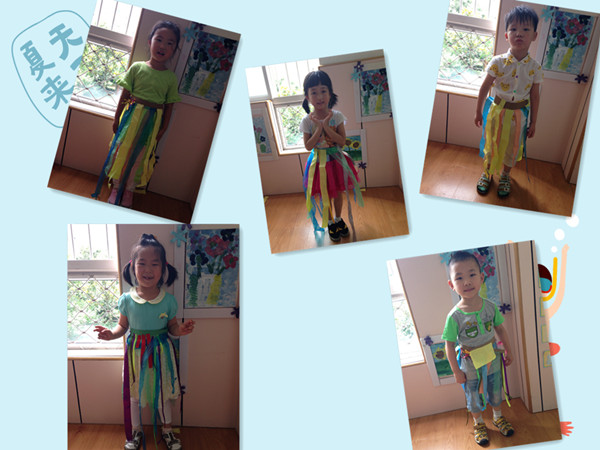 想不想看我们制作好的夏威夷草裙,那跟我一起走吧!