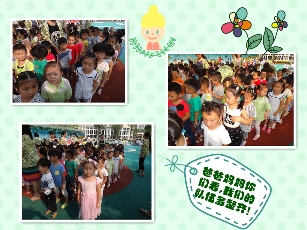 今天是上学的第一天,从今天开始我就是中班的小哥哥小姐姐啦!这是我们上中班第一次升国旗哦。你看,我们的小队伍都排的直直的,是不是比小班的时候进步很多呀!今天还有很多爸爸妈妈也在看我们升国旗哦,我们心里特别开心!