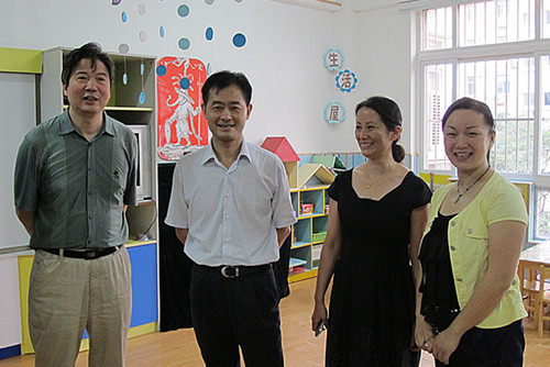 今年是翠屏山幼儿园改建项目最多的一年,由于工程多、工期短,教育局领导一直高度关注幼儿园的工程改造情况。开学之际,教育局局长朱慧、副局长宋军、刘勇、成爱玉主任等领导再次来到翠屏山幼儿园指导工作,实地查看了装修一新的大厅、走廊、专用室等工程的投入使用。毛应翠园长从安全、美化、人文三方面向领导作了汇报,朱局长充分肯定了翠屏山幼儿园的新环境新气象新举措,同时也希望幼儿园继续以加强内涵建设为核心,谋求幼儿园新一轮发展的亮点。