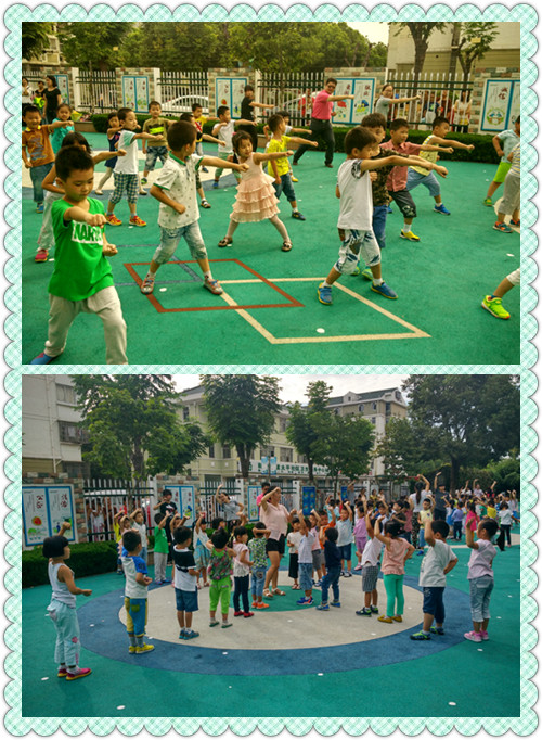 王老师和我们一起进行晨锻活动,活动之前带领我们一起热热身。
