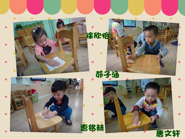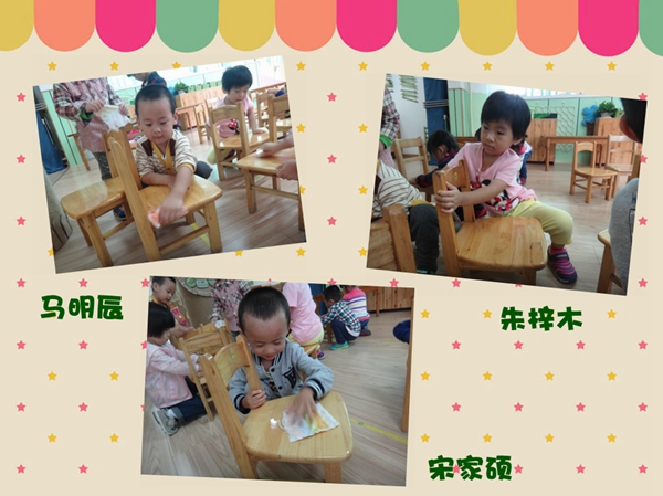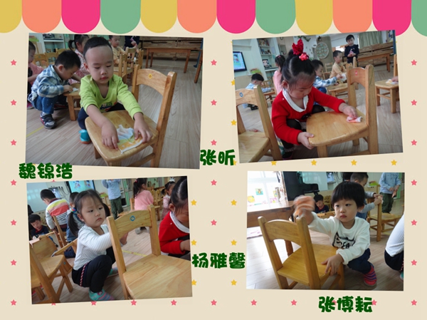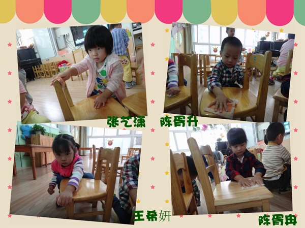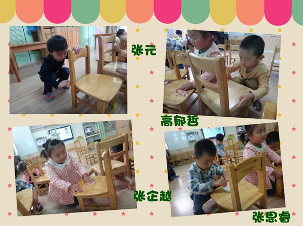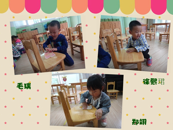 又是崭新的一天,在幼儿园日子,每天都很精彩哦!瞧,今天老师教会了我们一个小本领——擦椅子。小椅子也是我们的好朋友,我们要把它擦得亮亮的。