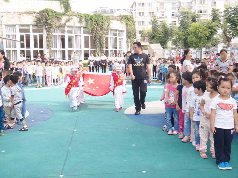 2015年9月21日上午8点30分,南京市翠屏山幼儿园举行了第四周升旗仪式。小朋友们满怀期待,早早地集结到了翠屏山幼儿园大操场上安静的等待升旗。担任本周升旗手的是大四班的李乐小朋友,他是一个乐于助人,全方位发展的小朋友。
